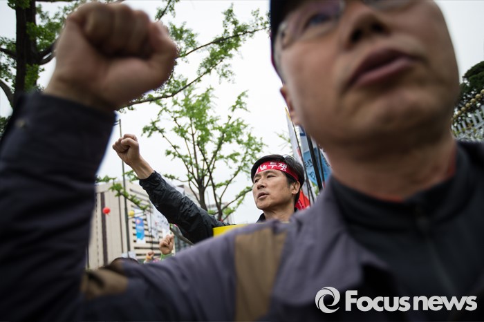 | △ 법외노조 후속조치 규탄 및 부당해고 저지 외치는 노동자들 |