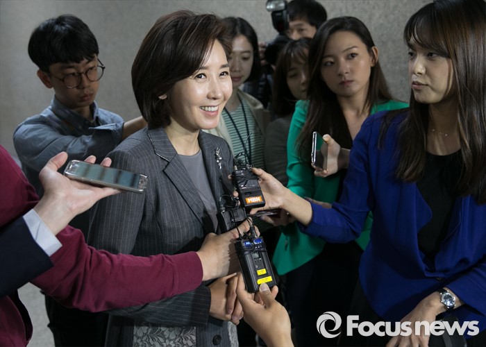 (서울=포커스뉴스) 새누리당 차기 원내대표 후보로 거론되는 나경원 의원이 29일 오전 서울 여의도 국회에서 원유철 원내대표와 면담을 위해 이동하고 있다.