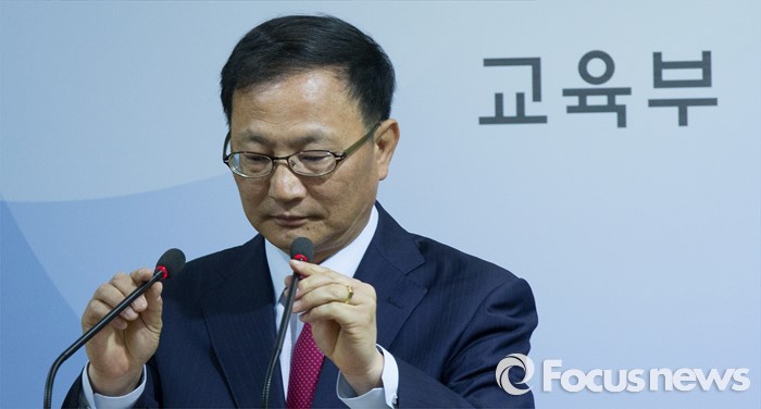 (세종=포커스뉴스) 정명채 한국대학교육협의회 입학지원실장이 27일 오전 세종시 정부세종청사 교육부 공용브리핑실에서 2018학년도 대입 전형 시행 계획을 발표하고 있다.