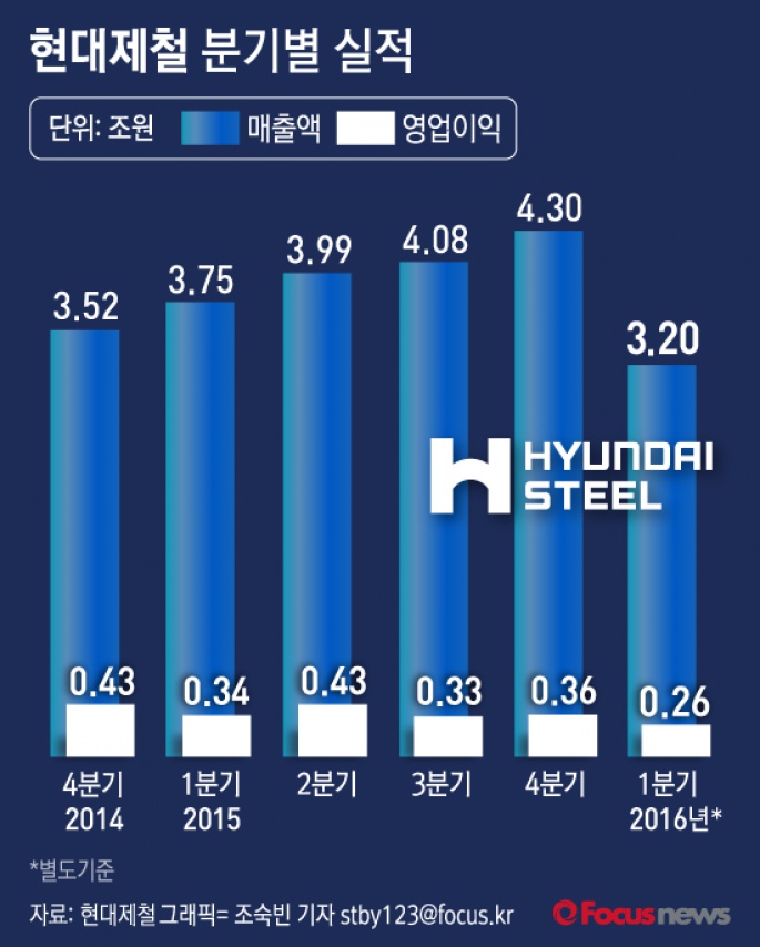 (서울=포커스뉴스) 현대제철은 27일 별도기준으로 1분기에 영업이익 2558억원을 올렸다고 공시했다. 이는 전년대비 24.9% 줄어든 수치다.