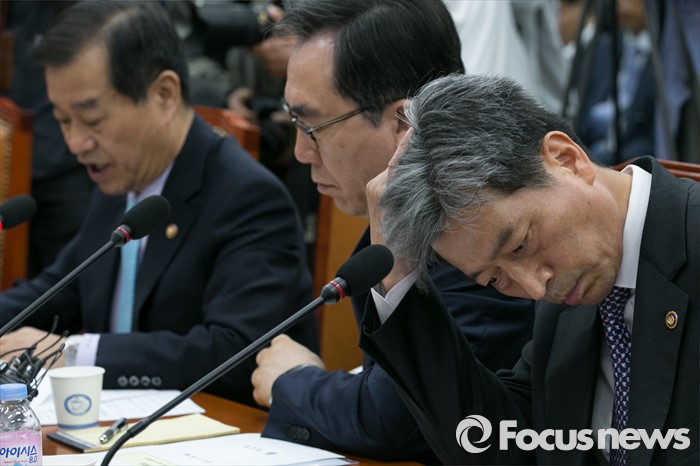 (서울=포커스뉴스) 황부기(오른쪽) 통일부 차관이 28일 오전 서울 여의도 국회에서 열린 대북 관련 긴급 안보 대책회의에 참석해, 생각에 잠겨 있다.