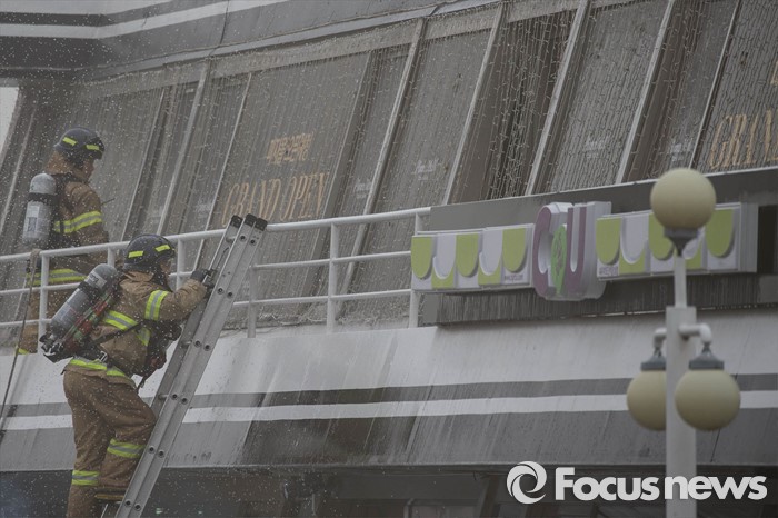 (서울=포커스뉴스) 27일 오전 서울 영등포구 여의도 한강공원 원효대교 일대에서 열린 '수도 서울 민․관․군 합동 대규모 복합재난 가상훈련'에 참가한 소방관들이 훈련에 임하고 있다.