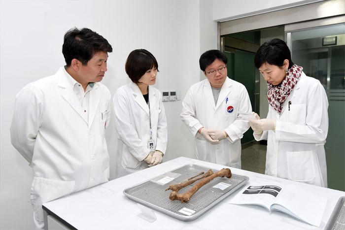 (서울=포커스뉴스) 미 DPAA K-208 프로젝트 팀장 진주현 박사가 지난 26일 국방부 유해발굴감식단에서 미측 봉환 유해 및 유품에 대한 최종 확인 검증을 하고 있다. <사진제공=국방부 유해발굴감식단>