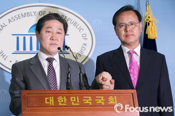 (서울=포커스뉴스) 지난달 28일 이명수 의원이 유기준 의원과 함께 20대 원내지도부 경선 러닝메이트에 나섰다. 비박계 이 의원은 정책위의장으로, 친박계 유 의원은 원내대표로서 '계파정치 청산'이라는 슬로건을 내걸고 경선 출마를 선언했다.