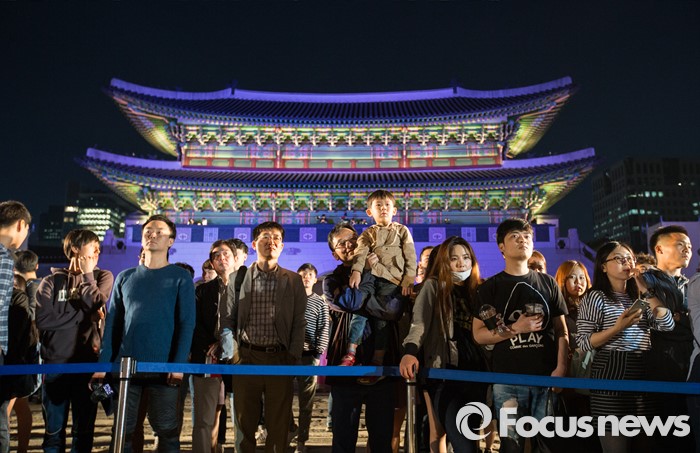(서울=포커스뉴스) 고궁에 온 관람객들이 29일 밤 경복궁 흥례문 광장에서 열린 제2회 궁중문화축전 개막제를 관람하고 있다. '오늘, 궁을 만나다'를 주제로 열리는 2016년 궁중문화축전은 다채로운 프로그램들과 함께 5월 8일까지 열린다.