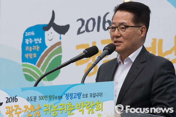 앞서 25일 광주를 찾은 김종인 더민주 대표와의 기자간담회에 같은 당 소속인 윤장현 광주시장이 불참하고 더민주 소속 광주시의원 13명도 당 지도부와의 간담회를 불참한 바 있다.(서울=포커스뉴스) 22일 오전 서울 광화문 광장에서 열린 '2016 광주·전남 귀농귀촌 박람회'에서 박지원 국민의당 의원이 축사를 하고 있다. 2016.04.22 조종원 기자