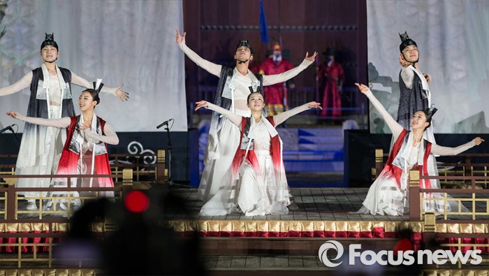 (서울=포커스뉴스) 29일 밤 경복궁 흥례문 광장에서 제 2회 궁중문화축전 개막제가 열리고 있다. '오늘, 궁을 만나다'를 주제로 열리는 2016년 궁중문화축전은 다채로운 프로그램들과 함께 5월 8일까지 열린다.
