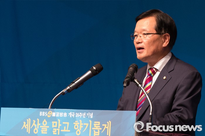 (서울=포커스뉴스) 2일 오후 서울 중구 프레스센터에서 열린 BBS 불교방송 개국 26주년 기념 비전선포식에서 정의화 국회의장이 인사말을 하고 있다.