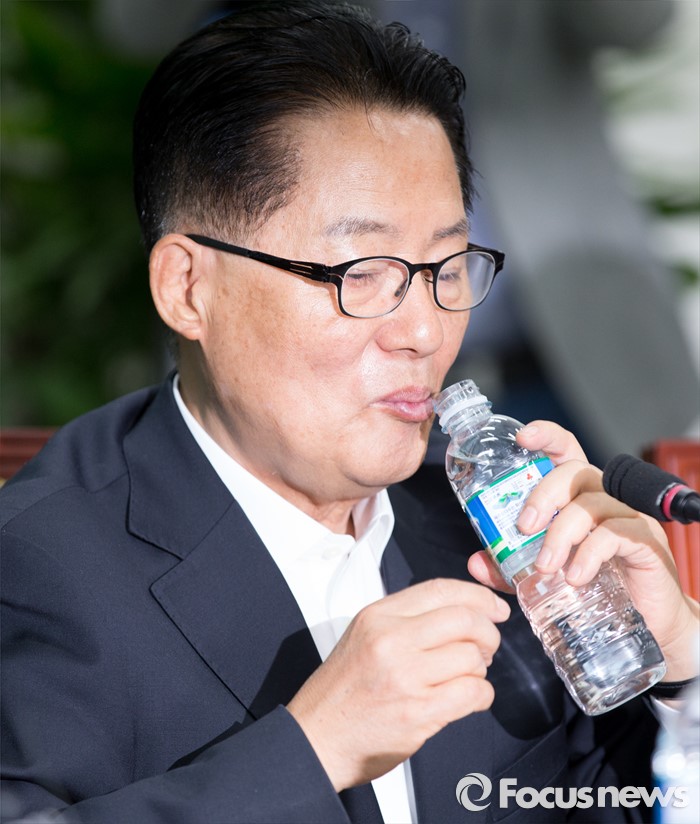 (서울=포커스뉴스) 박지원 국민의당 원내대표가 29일 오전 서울 여의도 국회에서 최고위원회의에 참석해 물을 마시고 있다.