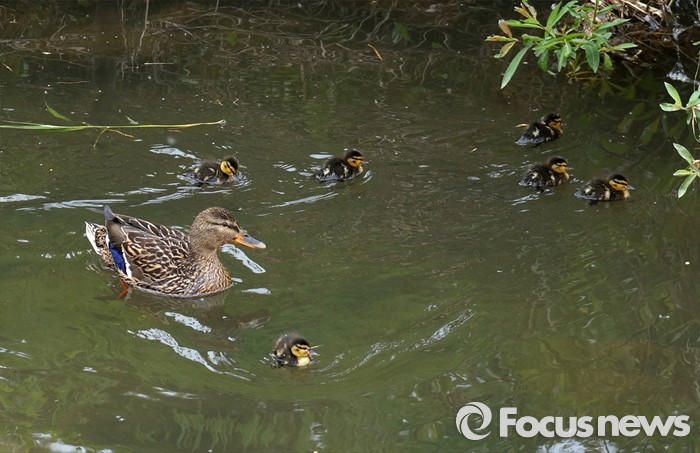 (과천=포커스뉴스) 27일 경기도 과천 양재천에 청둥오리가 갓 부화한 새끼들을 데리고 봄나들이 나왔다. 드디어 운동장을 만났다. 새끼들은 삐약 삐약 지저귀며 새 세상을 탐험하고 있다.