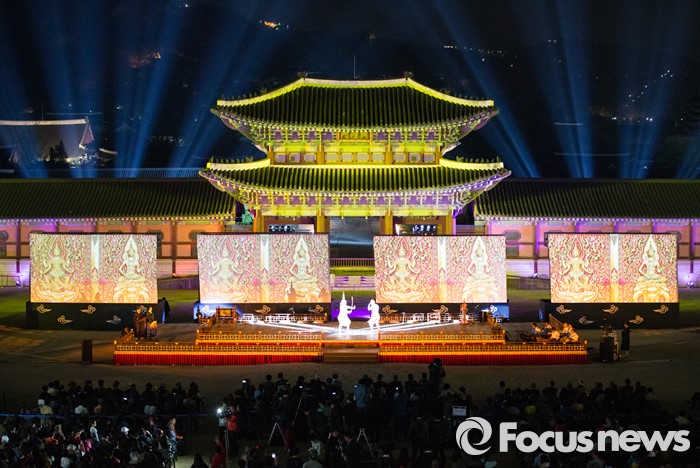 (서울=포커스뉴스) 29일 저녁 서울 경복궁 흥례문 광장에서 열린 제 2회 궁중문화축전 개막제에서 태국왕실문화공연이 화려한 불빛과 함께 시선을 사로잡고 있다. '오늘, 궁을 만나다'를 주제로 열리는 2016년 궁중문화축전은 다채로운 프로그램들과 함께 5월 8일까지 열린다.