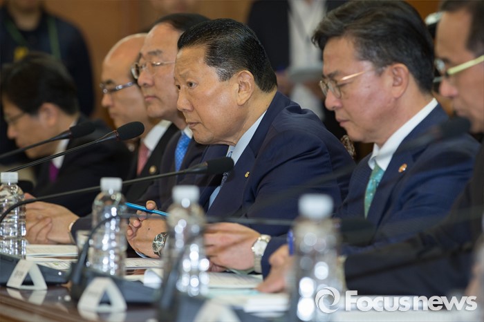 (서울=포커스뉴스) 29일 오전 서울 종로구 정부서울청사에서 열린 평창동계올림픽지원위원회에서 김정행(왼쪽 네번째) 대한체육회장이 황교안 국무총리의 모두발언을 듣고 있다.