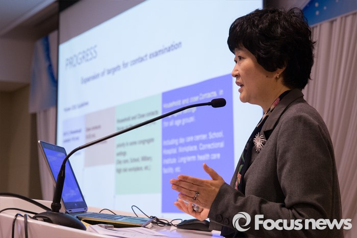 (서울=포커스뉴스) 27일 오전 서울 중구 프레지던트호텔에서 열린 '잠복결핵감염 관리 정책 국제회의'에서 고운영 질병관리본부 센터장이 '한국 현황, 도전 그리고 향후 계획'이라는 주제로 발표를 하고 있다.