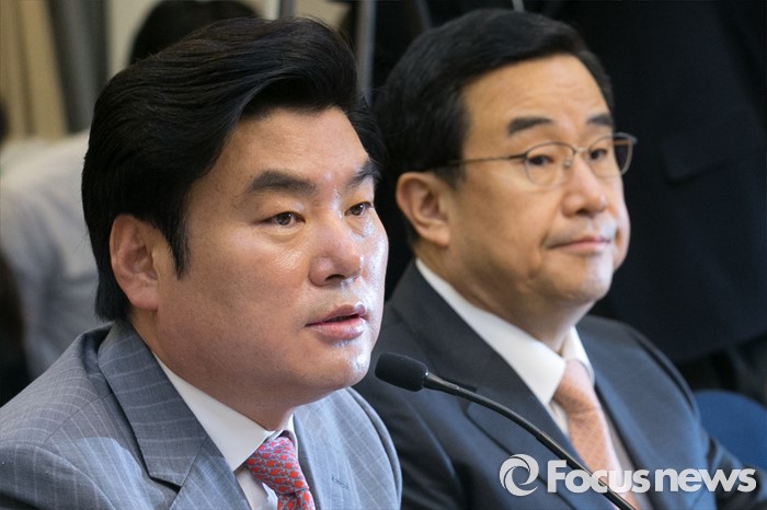 (서울=포커스뉴스) 원유철(왼쪽) 새누리당 대표최고위원 권한대행이 27일 오전 서울 여의도 국회 귀빈식당에서 열린 청년 · 여성 일자리대책 당정협의에 참석해, 모두발언하고 있다.