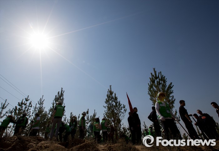 (다라더치/중국=포커스뉴스) 25일 오전 중국 내몽고 다라더치 쿠부치사막에서 2016 미래숲 15기 녹색봉사단원들이 나무 심기 작업을 하고 있다. 미래숲 녹색봉사단은 이번 봉사활동을 통해 황폐화된 사막에 나무 심기 및 각국 청년들과 우호를 증진을 위한 교류 활동을 전개했다.