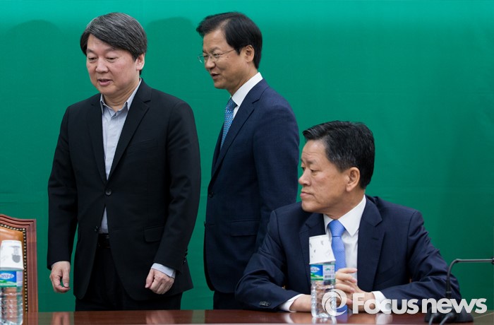 (서울=포커스뉴스) 안철수(왼쪽부터) 국민의당 상임공동대표와 천정배 공동대표가 25일 오전 서울 여의도 국회에서 최고위원회의에 참석하기 위해 입장하고 있다. 오른쪽은 주승용 원내대표.
