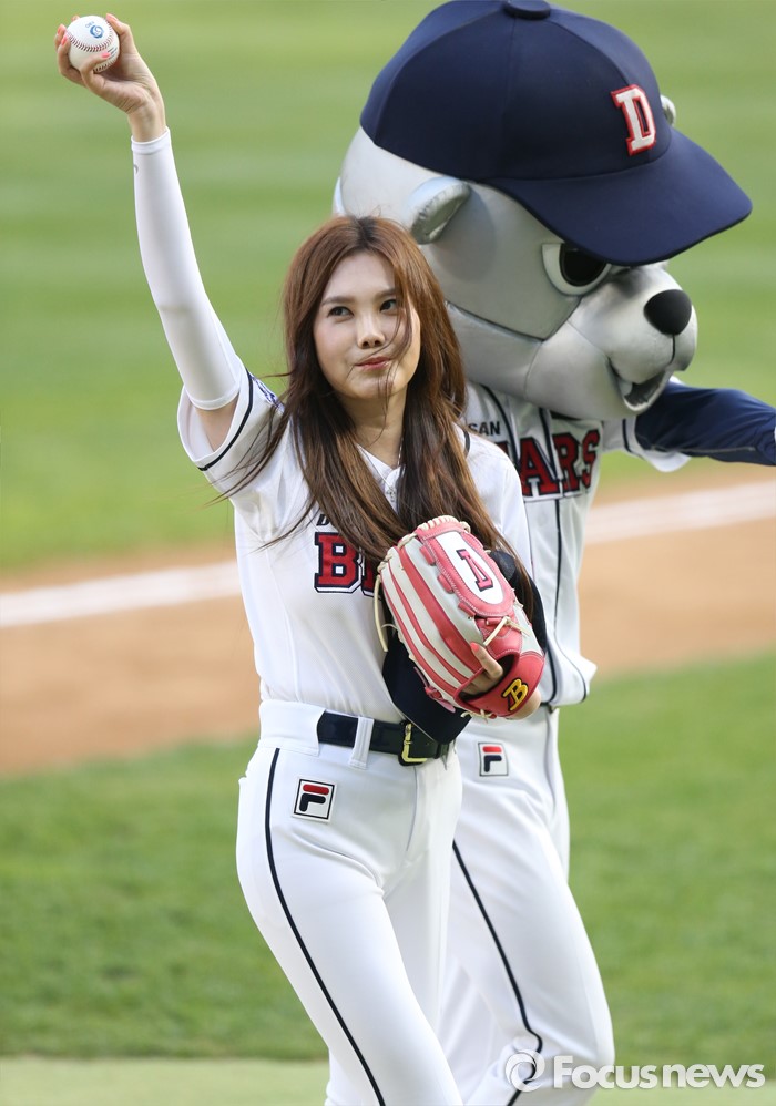 (서울=포커스뉴스) 28일 서울 잠실구장에서 열린 2016 프로야구 SK-두산 경기에 앞서 가수 김현정이 시구를 마치고 퇴장하며 관중에게 손을 흔들며 인사하고 있다.