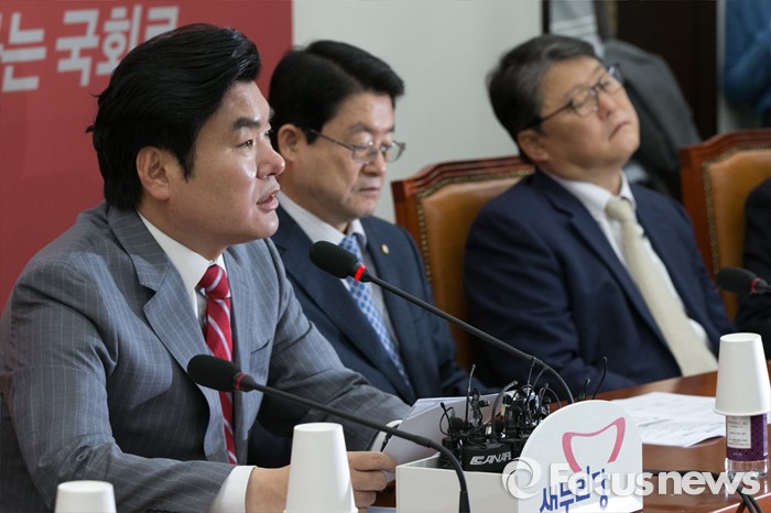 (서울=포커스뉴스) 원유철(왼쪽) 새누리당 원내대표가 25일 오전 서울 여의도 국회에서 열린 상임위원장 · 간사단 연석회의에 참석해, 모두발언하는동안, 정희수(가운데) 기재위원장, 조원진 원내수석부대표가 생각에 잠겨 있다.