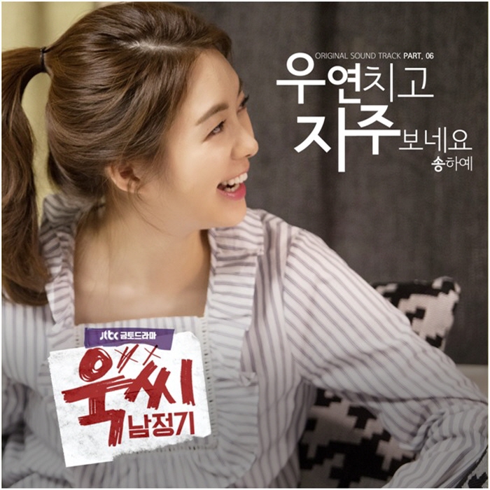 JTBC 금토드라마 ‘욱씨남정기’는 이요원(옥다정 역), 윤상현(남정기 역), 황찬성(남봉기 역), 임하룡(남용갑 역) 등이 출연 중이다. 가볍고 유쾌한 드라마로 출발했지만 매회 가슴을 울리는 스토리로 시청자들의 힘 있는 현실 공감 이야기를 풀어내며 많은 이들에게 깊은 울림을 주는 드라마로 거듭나고 있다.가수 송하예가 부른 JTBC 금토드라마 ‘욱씨남정기’ OST 여섯 번째 곡 ‘우연치고 자주 보네요’가 30일 오후 8시 공개된다. 사진은 앨범 재킷. <사진제공=더그루브엔터테인먼트>