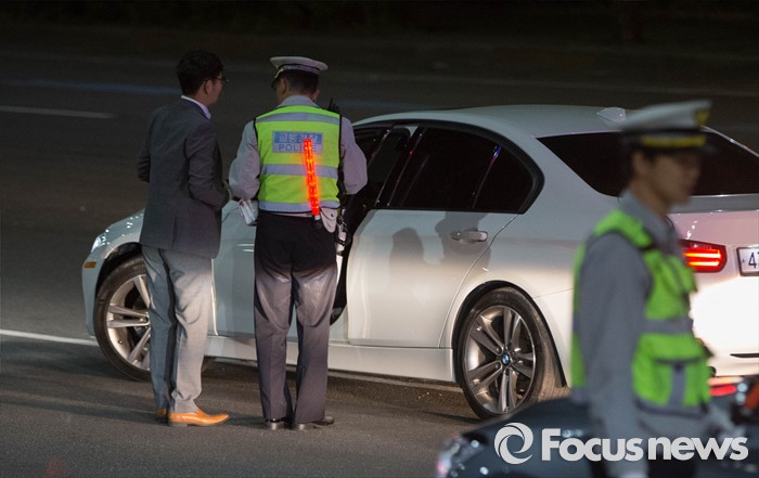 (서울=포커스뉴스) 대검찰청과 경찰청이 음주운전 근절을 위한 '음주운전사범 단속 및 처벌 강화 방안'을 첫 시행한 25일 오후 서울 송파구 인근에서 경찰이 음주단속에 적발된 시민과 대화를 나누고 있다.