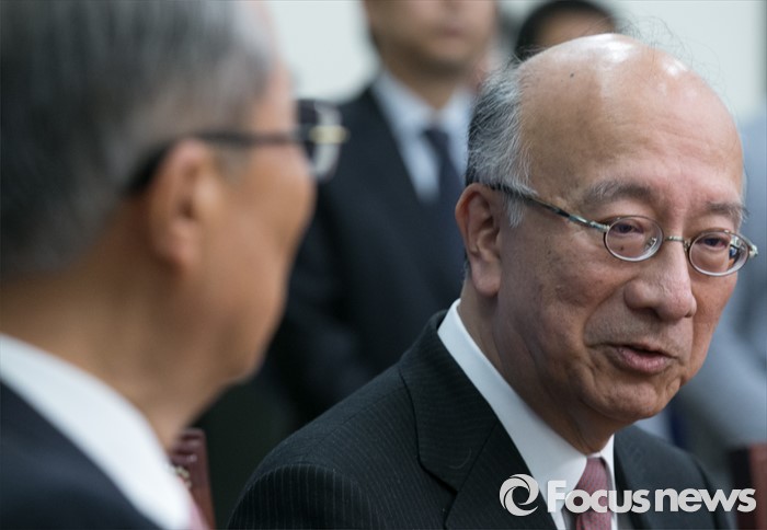 (서울=포커스뉴스) 벳쇼 코로(오른쪽) 주한일본대사가 26일 오후 서울 여의도 국회를 방문해 김종인 더불어민주당 비대위 대표와 환담하고 있다.