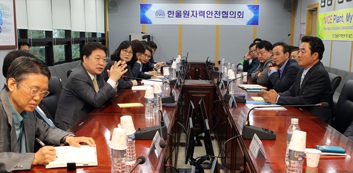 (서울=포커스뉴스) 김용환 원자력안전위원회 위원장이 27일 한울원자력본부 제1발전소 회의실에서 한울원자력안전협의회 위원들과 간담회를 나누고 있다. 김 위원장은 지난 15일 취임해 고리원자력안전협의회를 시작으로 지역주민과의 소통을 강조하며 각 지역 원자력안전협의회 위원들과 소통 행보를 이어갔다. <사진제공=원자력안전위원회>
