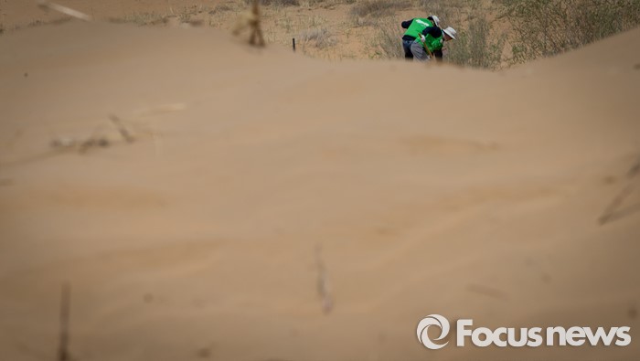 (다라더치/중국=포커스뉴스) 25일 오후 중국 내몽고 다라더치 쿠부치사막에서 2016 미래숲 15기 녹색봉사단원들이 나무 심기 작업을 하고 있다. 미래숲 녹색봉사단은 이번 봉사활동을 통해 황폐화된 사막에 나무 심기 및 각국 청년들과 우호를 증진을 위한 교류 활동을 전개했다.