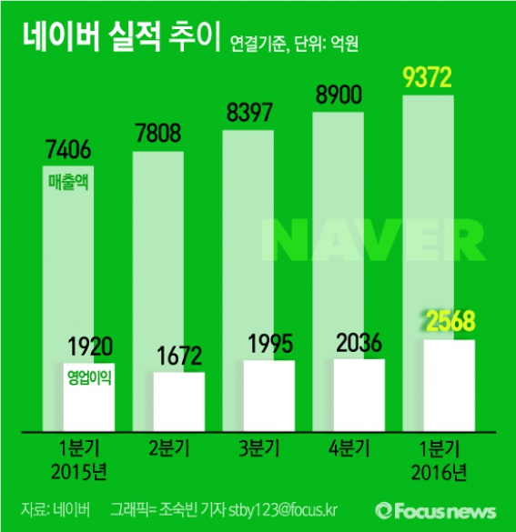 (서울=포커스뉴스) 네이버는 28일 지난 1분기 영업이익은 2568억원으로 전년 동기 대비 32.1% 증가했다고 공시했다.