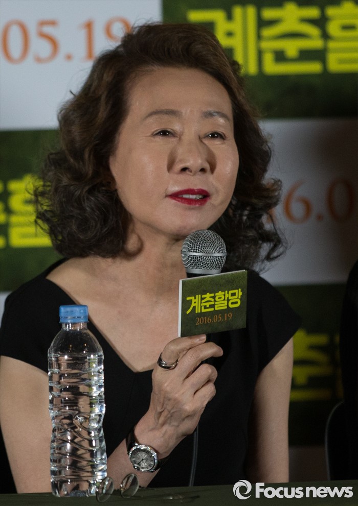 (서울=포커스뉴스) 2일 오후 서울 성동구 왕십리 CGV에서 열린 영화 '계춘할망' 언론시사회에 참석한 배우 윤여정이 인사말을 하고 있다.
