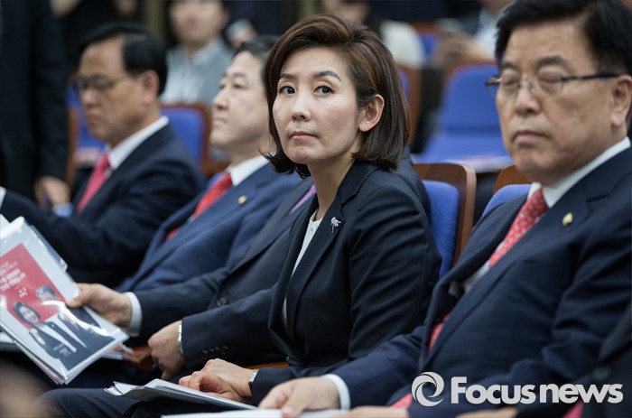 (서울=포커스뉴스) 나경원(가운데) 새누리당 원내대표 후보자가 3일 오후 서울 여의도 국회에서 열린 새누리당 원내대표, 정책위의장 선출 및 당선자 총회에 참석하고 있다.