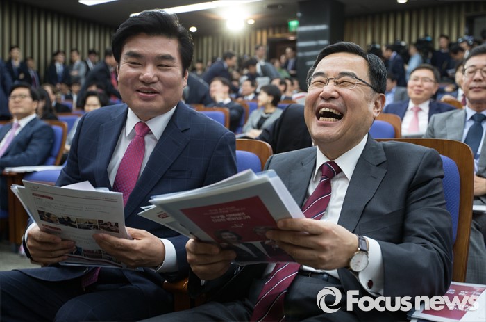 | △ 함박 웃음 짓는 원유철과 김정훈 |