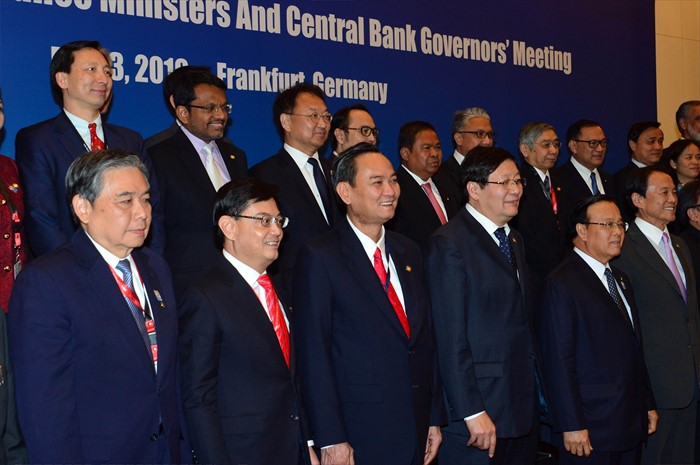 (서울=포커스뉴스) ADB연차 총회 참석차 독일 프랑크푸르트를 방문 중인 유일호(뒷줄 왼족 세 번째) 부총리 겸 기획재정부 장관이 5월 3일(현지시간) 메리어트호텔에서 열린 제19차 ASEAN+3 재무장관 및 중앙은행 총재 회의에 참석해, 각국 대표들과 기념촬영을 하고 있다. <사진제공=기획재정부>