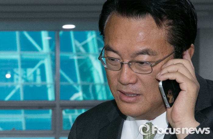 | △ 통화하며 이동하는 정진석 원내대표 |