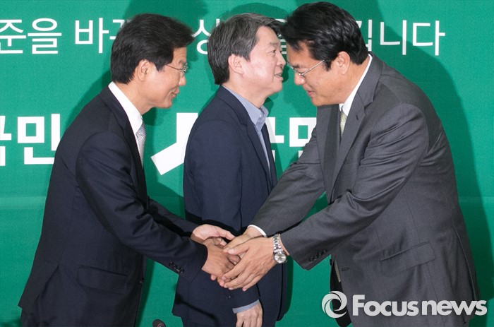 (서울=포커스뉴스) 정진석(오른쪽) 새누리당 신임 원내대표가 4일 오전 서울 여의도 국회에서 안철수(가운데) 국민의당 상임공동대표와 천정배 공동대표를 예방, 인사하고 있다.