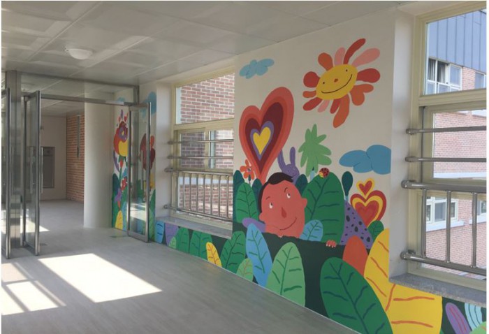 시 관계자는 "컬러테라피를 학교 공간에 적용해 학생들의 감수성을 키우고 학습능률을 높이기 위한 것"이라고 설명했다.
