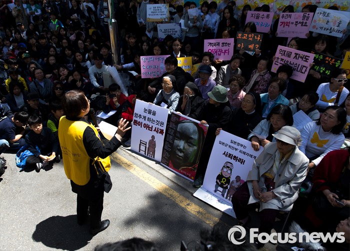 (서울=포커스뉴스) 4일 오후 서울 종로구 옛 일본대사관 앞에서 제1229차 일본군 위안부 문제해결을 위한 정기 수요집회가 열리고 있다.