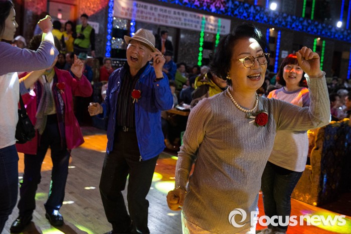 (서울=포커스뉴스) 어버이날을 앞두고 4일 오전 서울 중랑구 한국관나이트클럽에서 열린 '유린 어르신 효축제'에 참석한 시민들이 축제를 즐기고 있다.