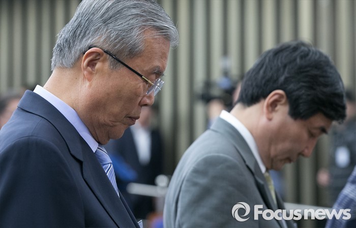 (서울=포커스뉴스) 4일 오후 서울 여의도 국회에서 열린 더불어민주당 20대 국회 1기 원내대표 선출을 위한 당선자 총회에 참석한 김종인(왼쪽) 비대위 대표와 이종걸 원내대표가 묵념을 하고 있다.