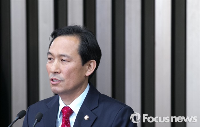 (서울=포커스뉴스) 4일 오후 서울 여의도 국회에서 열린 더불어민주당 20대 국회 1기 원내대표 선출을 위한 당선자 총회에서 선출된 우상호 신임 원내대표가 소감을 전하고 있다.