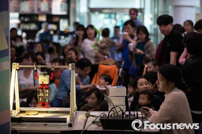 (서울=포커스뉴스) 어린이날을 앞둔 4일 오후 서울 서초구 서울시어린이병원에서 열린 '로봇댄스 및 체험' 행사에 참가한 어린이들이 공연을 관람하고 있다.