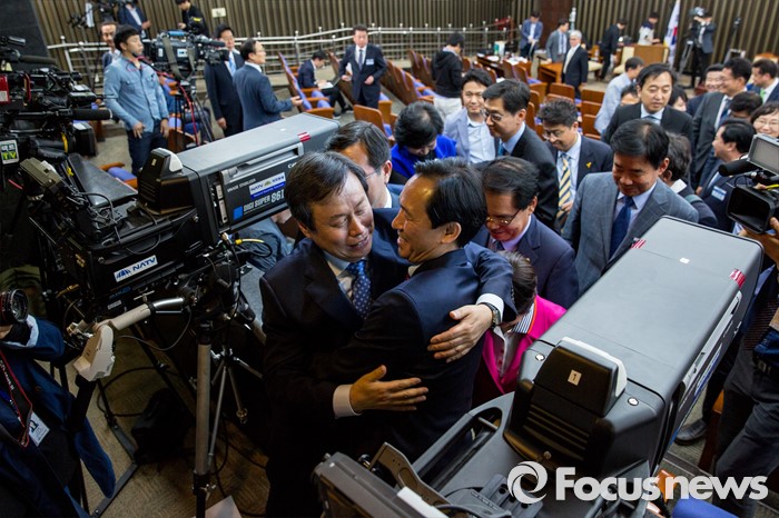 | △ 도종환 의원과 포옹하는 우상호 원내대표 |
