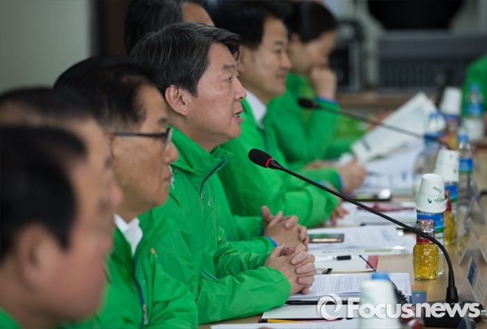 (인천=포커스뉴스) 4일 오후 인천 남동구 (주)인천화장품 인천공장에서 열린 국민의당 정책역량 강화 집중 워크샵'중소기업 대표 및 근로자와의 간담회'에서 안철수(가운데) 국민의당 상임공동대표가 인사말을 하고 있다.