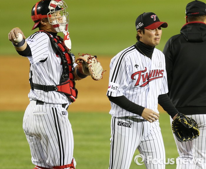 | △ 마운드 내려가는 LG 우규민 |
