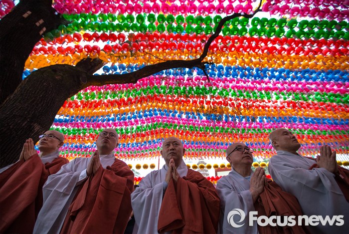 (서울=포커스뉴스) 4일 오후 서울 종로구 조계사에서 연등 점등식이 열리고 있다.