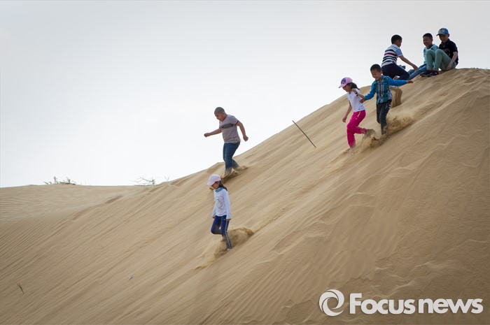 (다라더치/중국=포커스뉴스) 중국 내몽고 다라더치 쿠부치사막에서 만난 어린이들의 천진난만한 모습들. 누군가에게 사막은 땀과 고난의 땅이지만 동심에겐 훌륭한 놀이터가 된다. 모래밭 같은 삶 속에서 잠시 잊혀진 동심을 꺼내, 저 어린이들과 함께 달려본다.