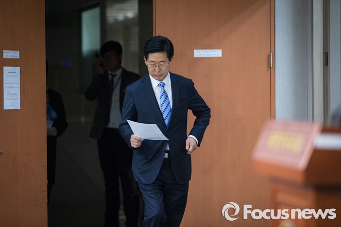 | △ 브리핑룸 들어서는 양승조 가습기 살균제 특위 위원장 |