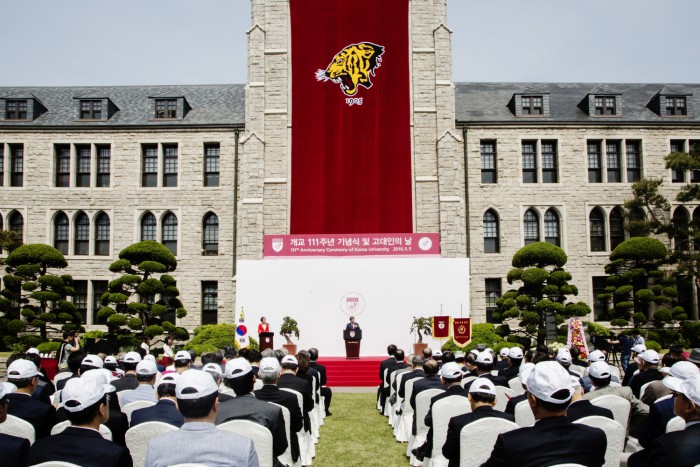 (서울=포커스뉴스) 고려대학교와 고려대학교 교우회가 5일 오전 10시 30분 서울 성북구 고려대학교 본관 앞 잔디밭에서 '고려대학교 개교 111주년 기념식 및 고대인의 날' 행사를 개최했다.