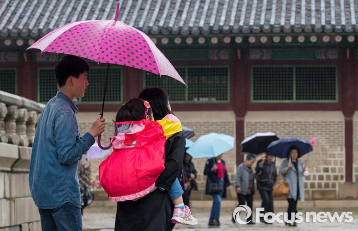 (서울=포커스뉴스) 임시공휴인인 6일 오후 서울 경복궁을 찾은 시민 및 관광객들이 궂은 날씨 속에 궐내 경치를 즐기고 있다.