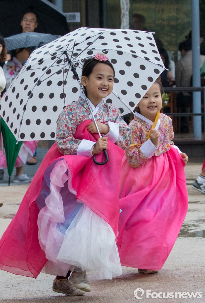 (서울=포커스뉴스) 임시공휴인인 6일 오후 서울 경복궁에서 한복을 차려입은 어린이들이 즐거운 시간을 보내고 있다.