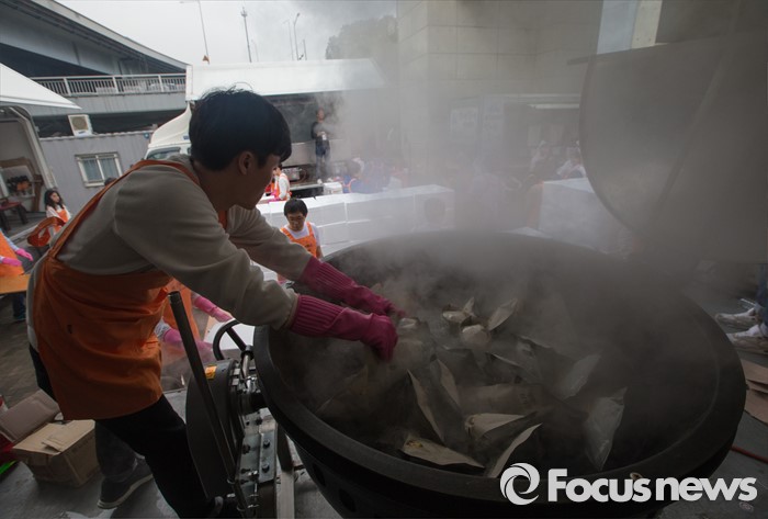 (서울=포커스뉴스) 6일 오후 서울 반포한강공원에서 열린 삼계탕 파티에서 행사 관계자들이 중국 건강보조제품 회사 중마이그룹 직원들에게 나눠줄 삼계탕을 데우고 있다. 이날 한강공원을 찾은 4천여명의 중마이그룹 직원들은 삼계탕 파티와 태양의 후예 OST 미니 콘서트 등을 즐겼다.